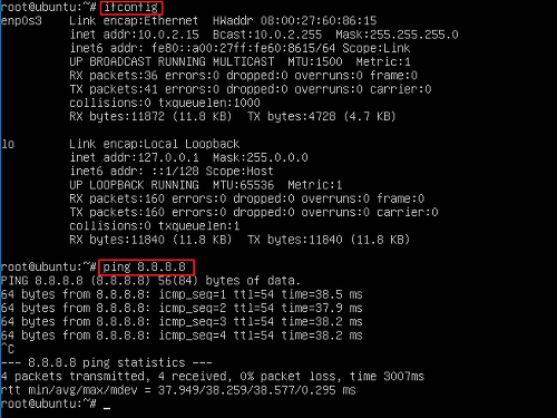 설치할 때 입력한 사용자로 들어가서 su 명령어를 통해 root로 사용자를 변경해줍니다. 바뀐 root에서는 비밀번호가 설정되어 있지 않기 때문에 비밀번호를 꼭 설정해줍니다. 그리고 나서 인터넷이 연결되어있는지, 이더넷이 제대로 올라왔는지 확인해줍니다.