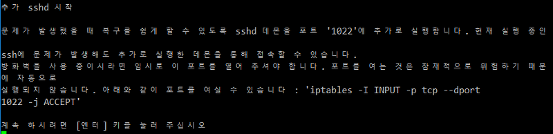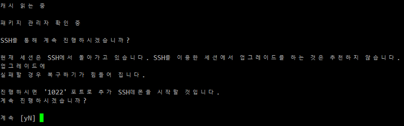 원격접속(ssh)를 통해 업그레이드를 진행하고 있기 때문에, 추가적으로 1022 포트를 열어 업데이트를 진행합니다.