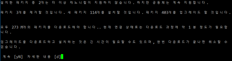 업데이트 진행 후 업그레이드를 진행합니다.
