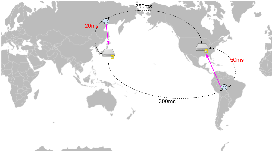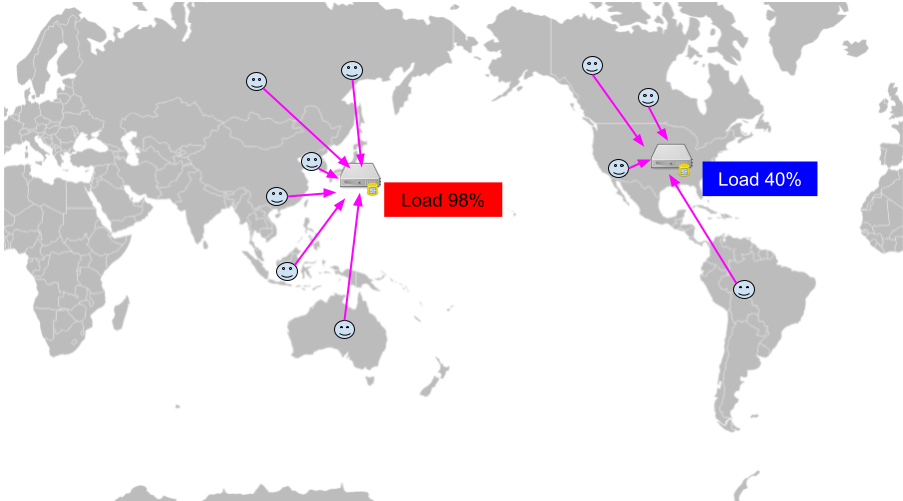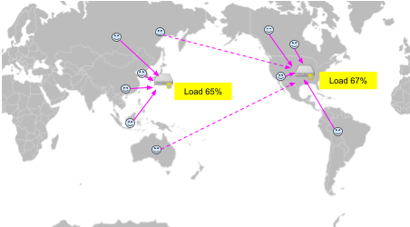 GSLB는 각 지역별로 서버에 대한 레이턴시 정보를 가지고 있습니다. 유저가 접근을 하게 되면, 유저의 지역으로부터 가까운 (더 적은 레이턴시를 가지고있는)서버로 연결을 합니다.