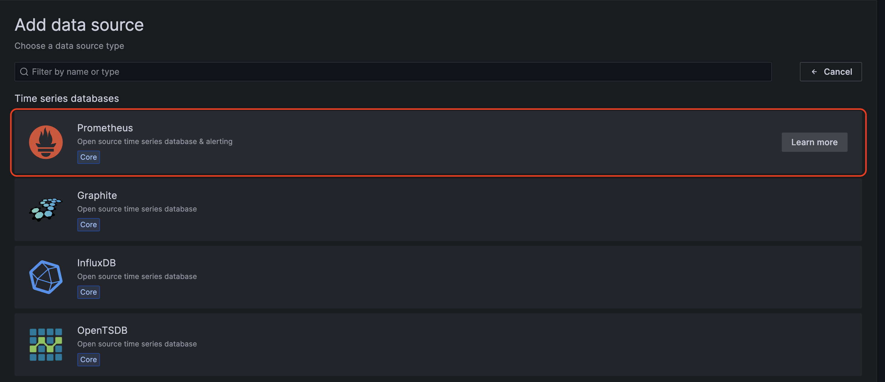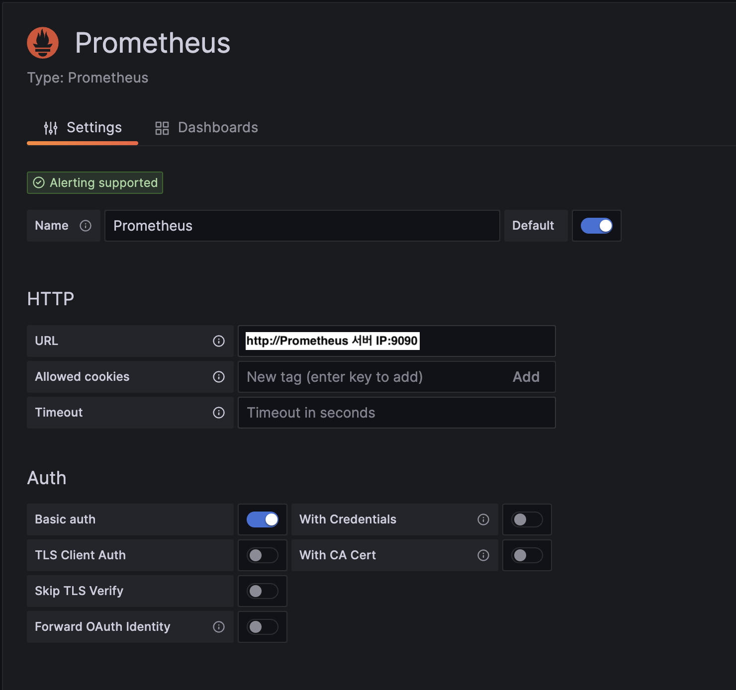 1) Grafana WEB UI 접속 후, DataSource 추가